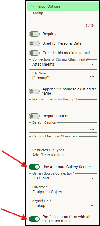 You can now visually compare photos or documents from previous submissions with the current state of an item (such as equipment or a picking ticket) using an alternate gallery source on your form. A new toggle has been added to the Media input to enable the alternate gallery source.