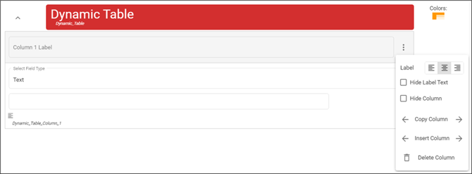 - From the Actions/Container menu in the Form Designer, click Dynamic Table.