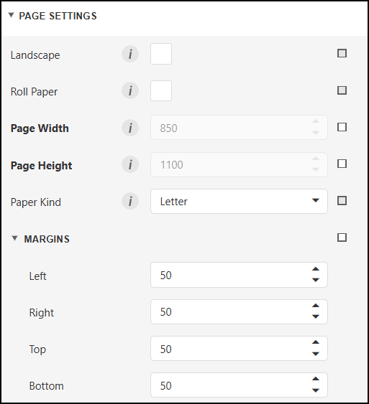 Margins can be changed by dragging the ruler to increase or decrease the size of the printable report space (indicated with a brighter yellow color in the margin).