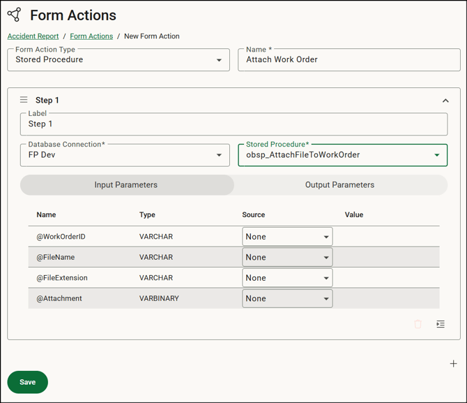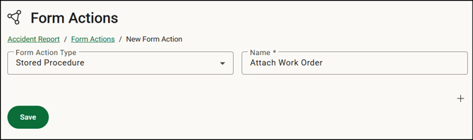 - Choose Stored Procedure as the form action type, then enter a name for your form action.
