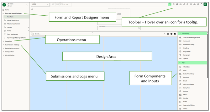 Forms are created and maintained within the Administrator site. This site includes a comprehensive forms designer that provides all the tools required to configure forms, reports, users, workflows, and email notifications.
