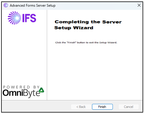 - When Azure App Service is done installing the Completing the Advanced Forms Server Setup Wizard window opens.