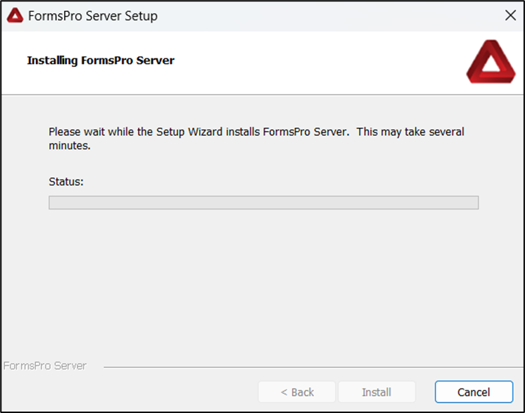 - The Installing FormsPro Server window opens.