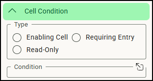 You can set table cells to be read-only based on specific conditions. Read-only fields are useful when displaying information that users need to see but shouldn’t be able to edit, such as a Last Replacement Date.