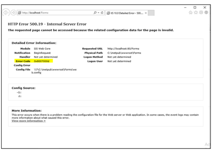 - Edit the web.config file in the Forms folder in IIS.