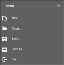 The Report Designer menu is used to open an existing report, save a report, and exit the Report Designer. It is accessed from the upper left-hand corner in the Report Designer.