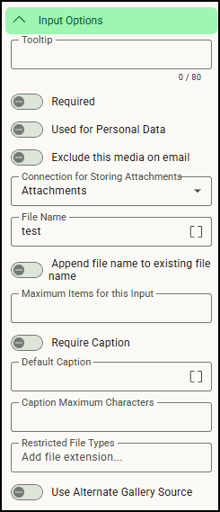 - In the Maximum Items for this Input field enter a maximum number of items that can be added to a media input. Then specify the maximum number of media items that can be attached.