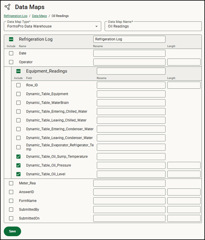 - You don’t need to add all the fields and, because you can create multiple maps for each form, you can create a map for some fields on your form and a separate one for others. If you know what you’ll be using the data for, it will help you create an appropriate map. For example, if you are required to report on water temperatures, but your form contains oil pressure information, you can create a data map for just the water temperature information needed on the report to simplify the data sorted out.
