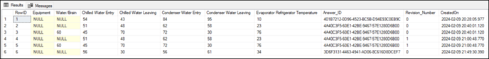 In this example, the dynamic table populated with the equipment readings is in a separate table: